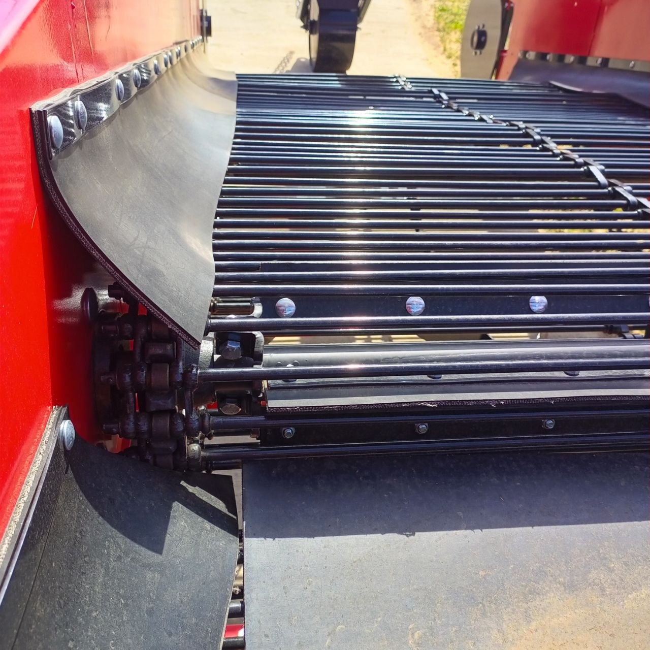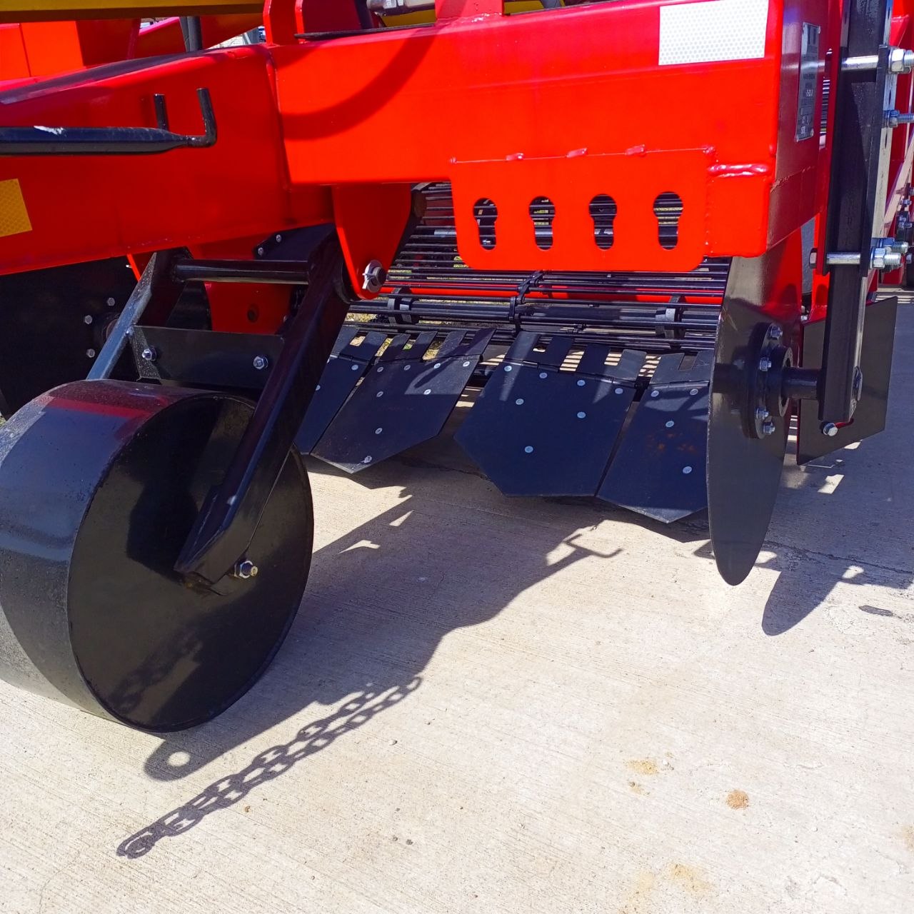 Валкообразователь эффективно вспахивает почву, попутно отделяя клубни от прилипшей земли. Передний битер разбивает комья земли, обеспечивая бесперебойную работу копалки.